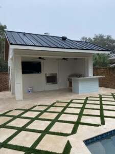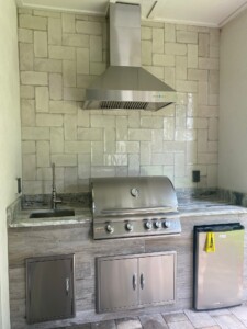 All our summer kitchens are custom made with durable aluminum frame and exterior grade cement board. They can be wrapped up with any finish like: Stucco & paint, Travertine Tile, Porcelain Tile, Stacked Stones and more. Countertops are granite with different price ranges and exterior grade quartz. The outdoor rated stainless-steel appliances are available from different brands such as: Summerset Grills, Blaze, Fire Magic, Alfresco and Artisan. From basic to high end level, you will find different options such as: Grills with different features and sizes, side burners, pizza ovens, refrigerators, kegerators, wine coolers, Ice bins, Ice makers, sinks and faucets, doors & drawers and vent hoods.